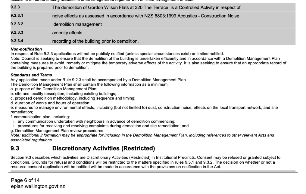 If you’re wondering what Section 194 might refer to… it appears to concern controls over the demolition process as a ‘discretionary activity’ – that is, if the community wanted any rights to ask for the demolition process to be managed in a safe and controlled way. The Council’s response: